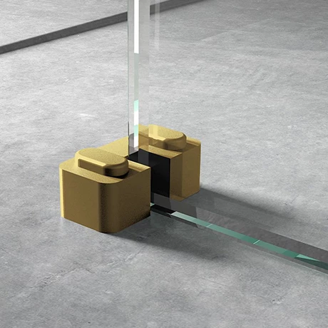 The wetroom screen support foot in brushed brass is an optional extra for use with Arezzo wetroom screens and is designed to ensure safe installation and secures the wetroom screen in place.