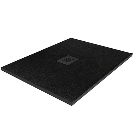 A textured black slate effect square shower tray with a sleek ultra-low profile, these beautifully crafted slate effect shower trays are perfect for adding a natural feel to your bathroom. This robust square shower tray has been manufactured from a gel coat stone resin with slate finish and can be installed flat or recessed into the floor.