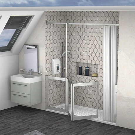 Designed for independent & assisted showering to help retain water in the shower area, the Milton Front Access Half Height Bi-Fold Door Hinged from Fixed Panel is ideal for use on shower trays or in wetrooms providing ease of use & installation. The doors are glazed with PET environmentally friendly impact resistant glazing as standard. The flip over latch will prevent door movement should a carer lean against them & will provide a more rigid enclosure while the rise & fall hinges lift the door by at least 10mm & are easy to operate & highly manoeuvrable. The Easy to grip āDā handles supplied for users with limited strength. Supplied as standard with a 2000mm drop antibacterial protected shower curtain and rail.