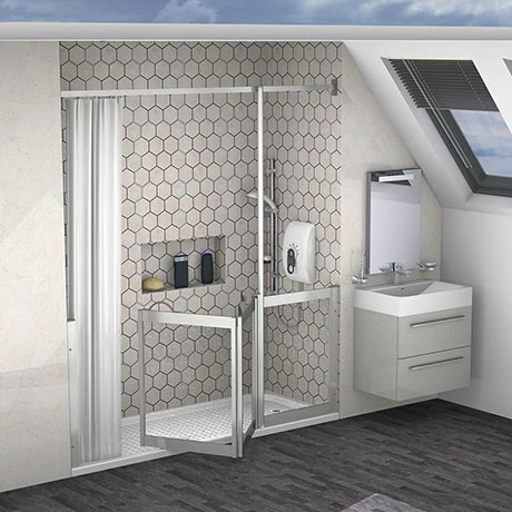 Milton Silver RH Front Access Half Height Bi-Fold Shower Door Hinged from Fixed Panel